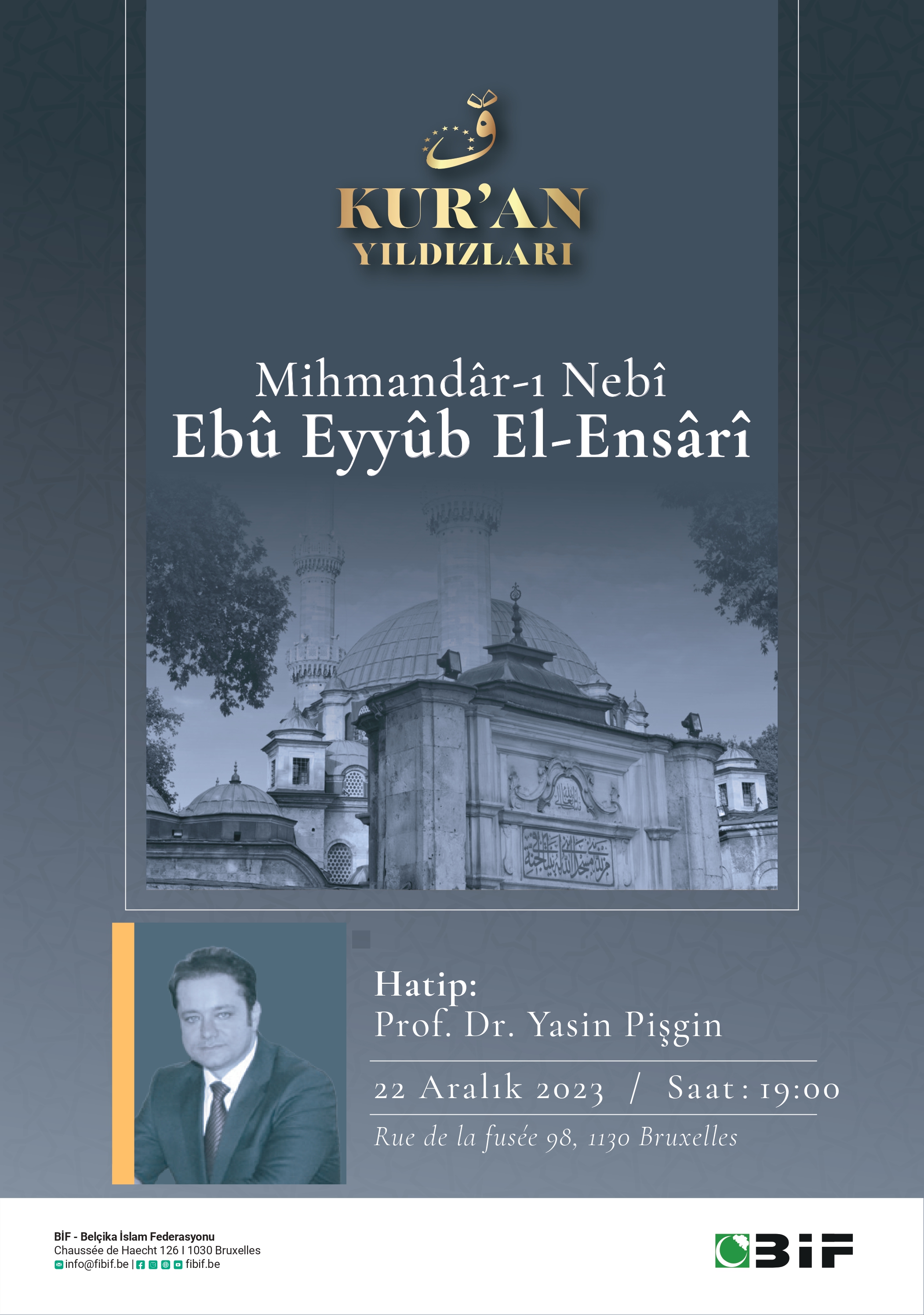Prof. Dr. Yasin Pişgin'in katılımıyla gerçekleştirilecek olan "Mihmandâr-ı Nebî Ebû Eyyûb El-Ensârî" konulu programımıza davetlisiniz.